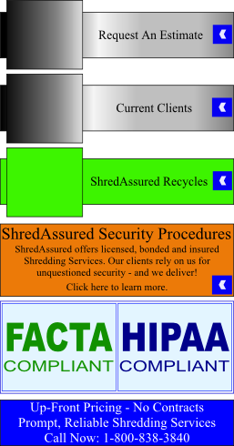Home | Paper Shredding | Computer Destruction | Other Services | Security Procedures | Security Containers | FAQs | About Us | Contact Us